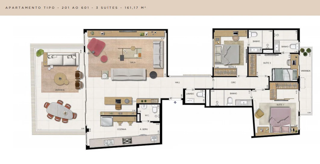 Apartamentos 3 suítes com 161m².